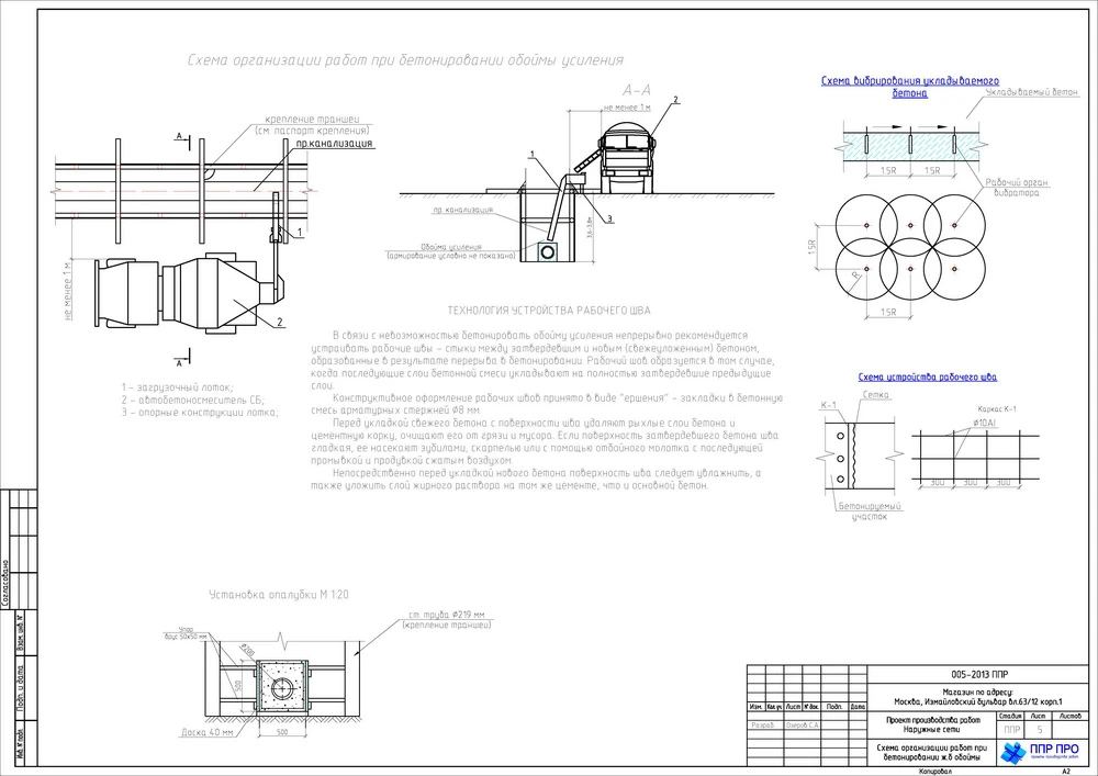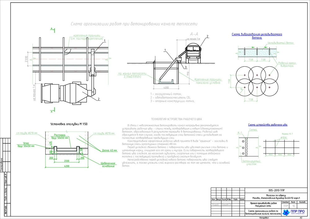 - Последовательность работ задаётся геодезической разбивкой, разработкой траншей с откосами или креплением, укладкой трубопроводов на песчаное основание и обратной засыпкой после гидравлических испытаний;