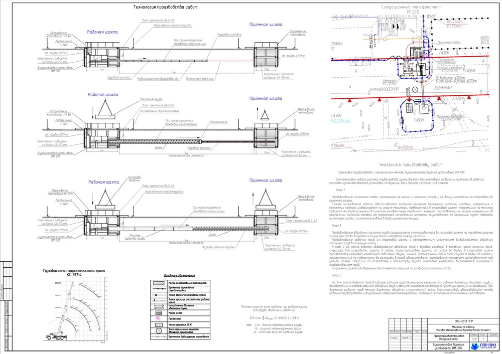 - Стройгенплан с размещением техники, временной инфраструктуры, складских зон и траншей с учётом зон действия экскаваторов и трубоукладчиков;